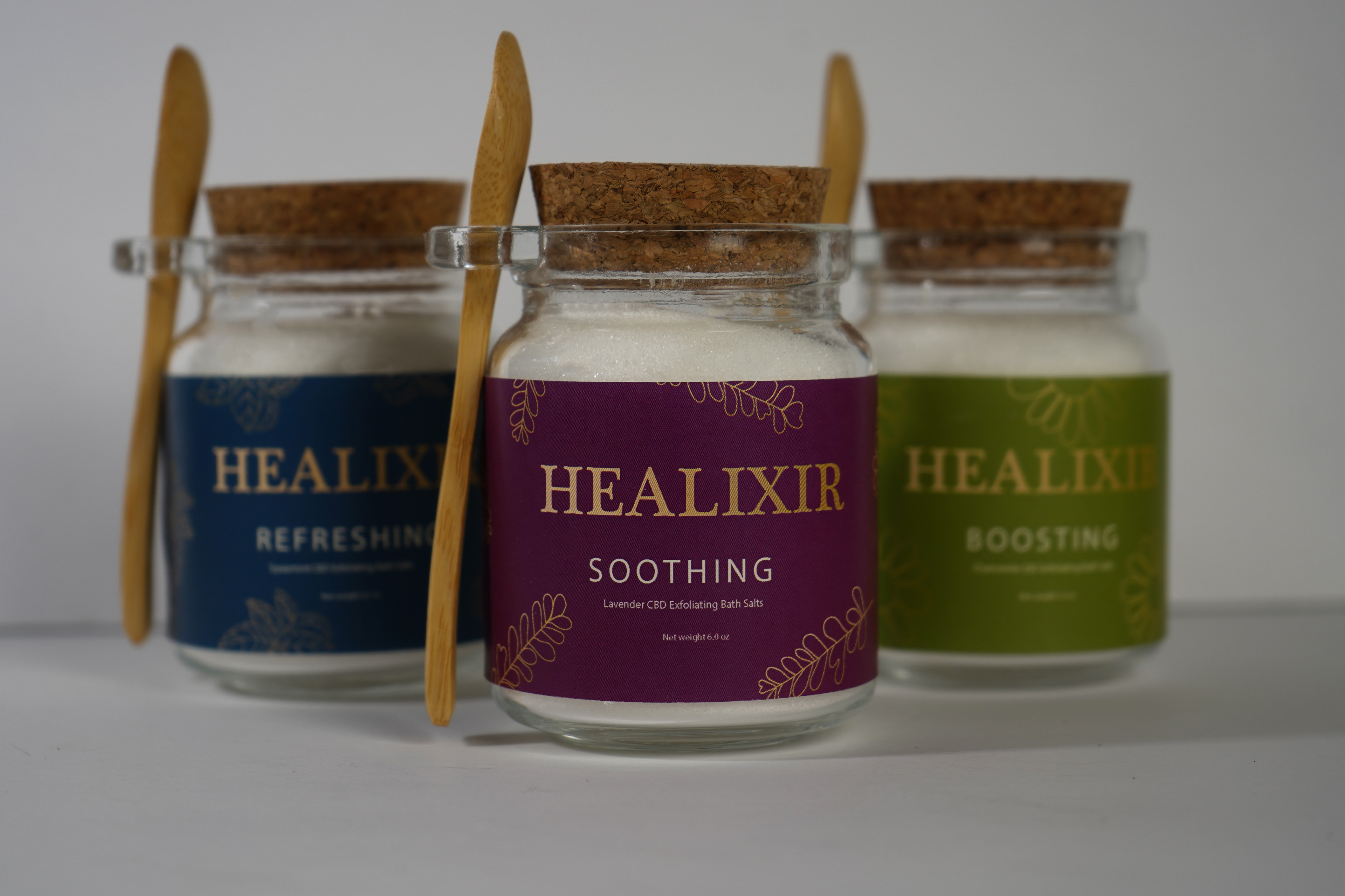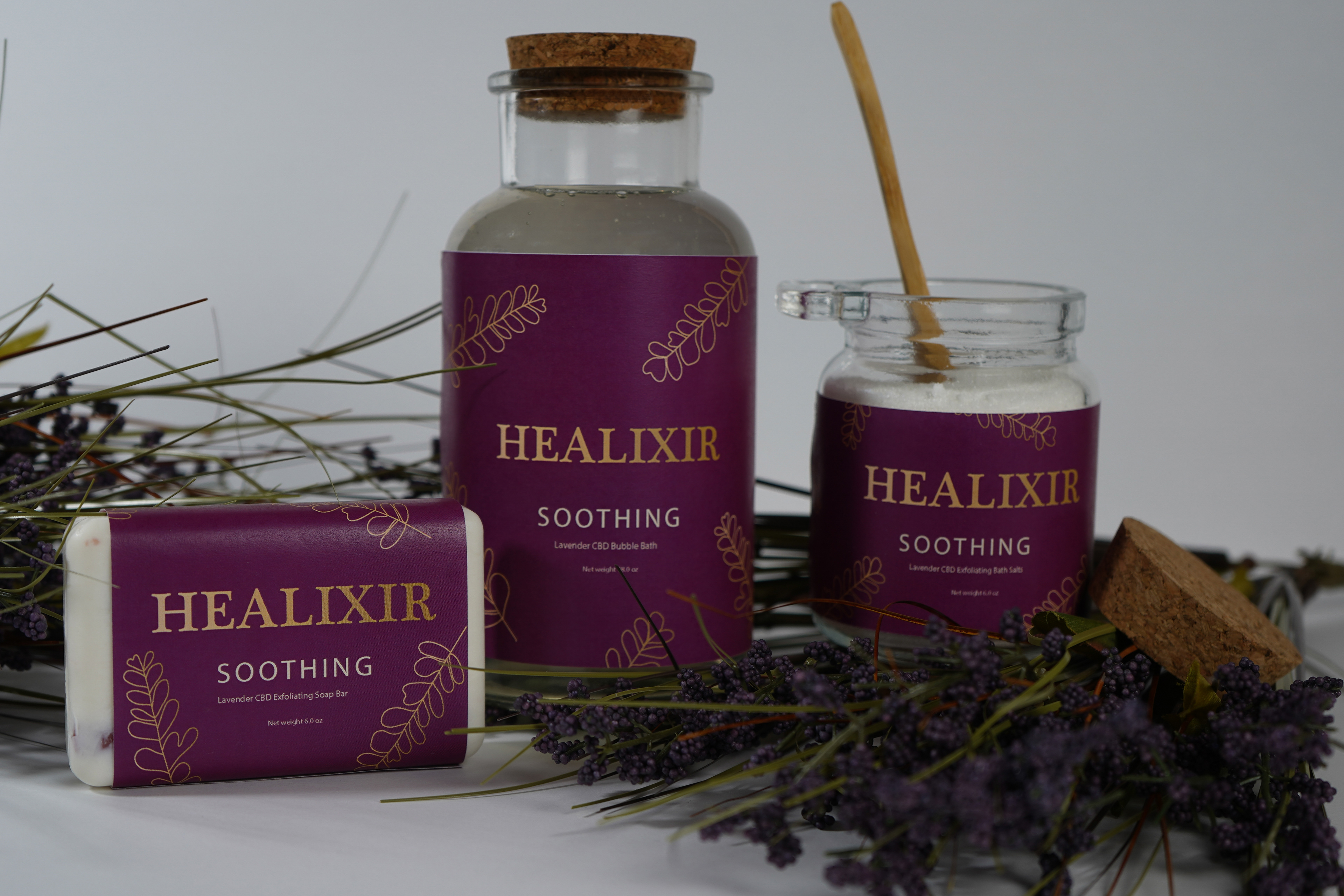 HEALIXIR is an all organic, non-gmo, and pesticide free soap line. Each product is infused with 50mg of CBD to aid with body pain. Each ingredient is specifically chosen for its natural healing and soothing agents. (Product photography done by me)