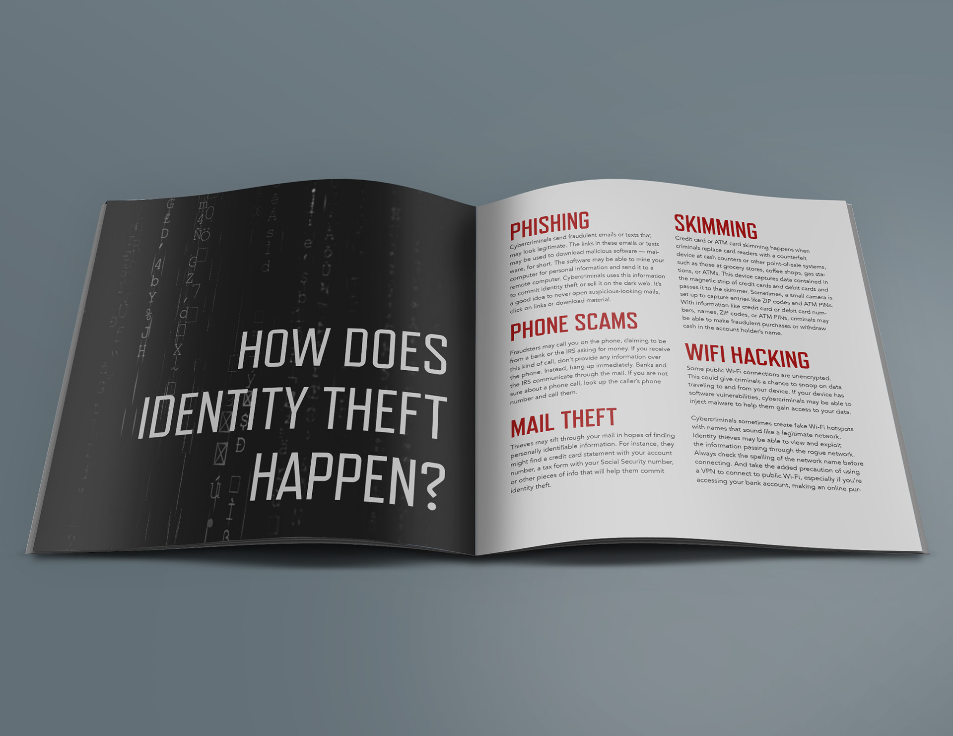 Identity Fraud is a visual narrative explaining the importance of protecting your identity. It provides its readers with information on identifying if your personal information has been compromised as well as ways to better improve your security.