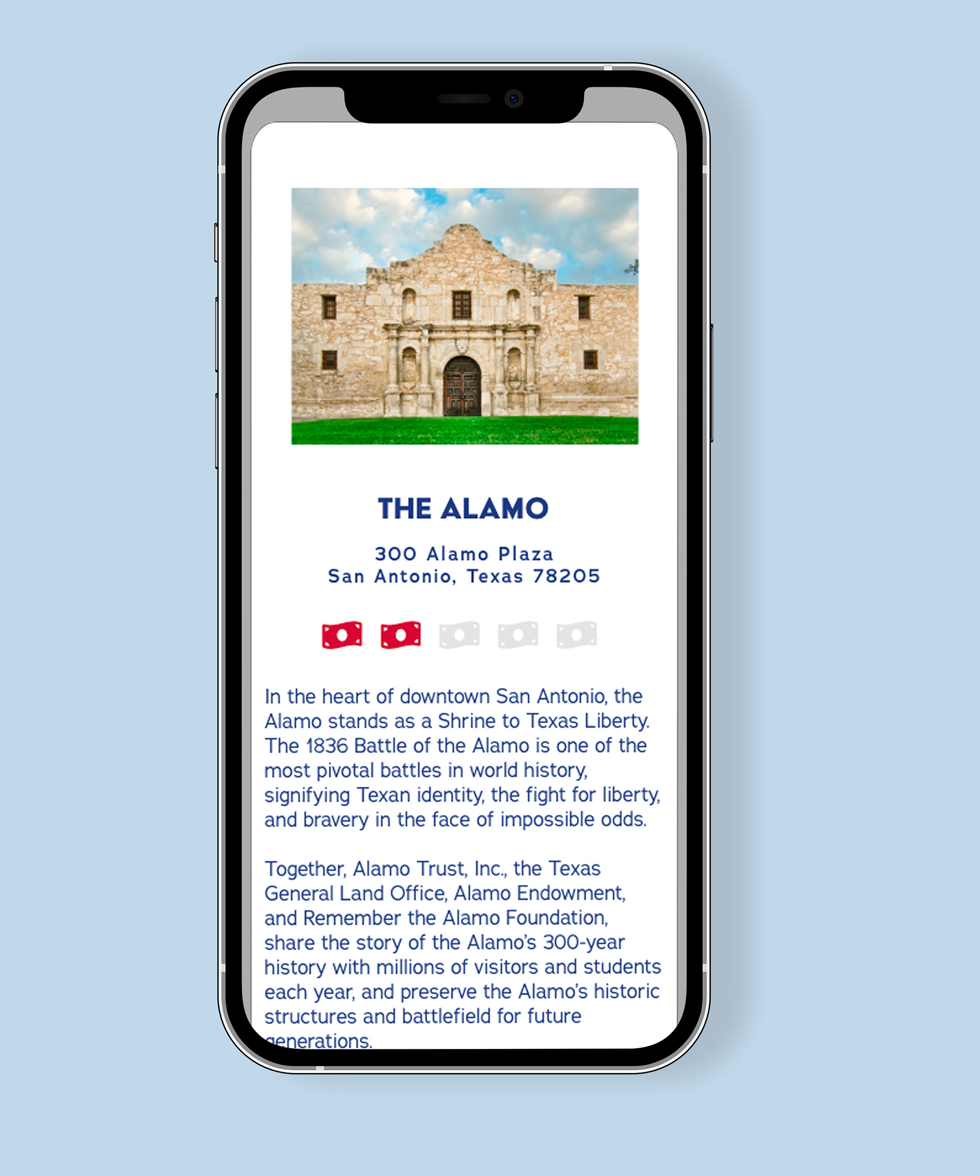 Map is designed to be interactive. Users will click on red star and location will appear as an overlay over the Texas map.